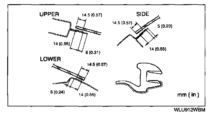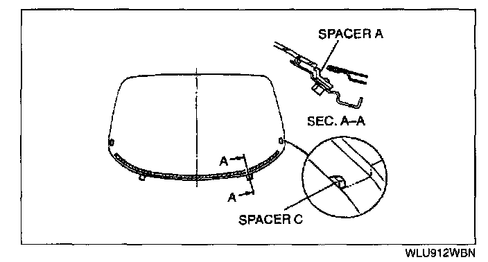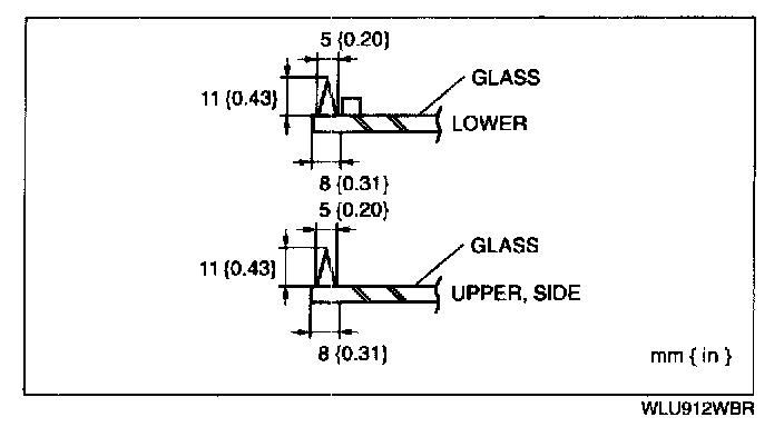 8. Temporarily install the glass onto the body and adjust the glass-to-body clearance as indicated.
