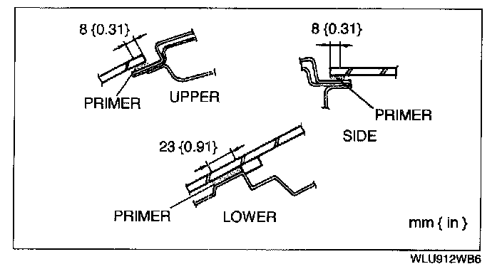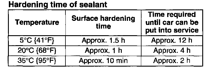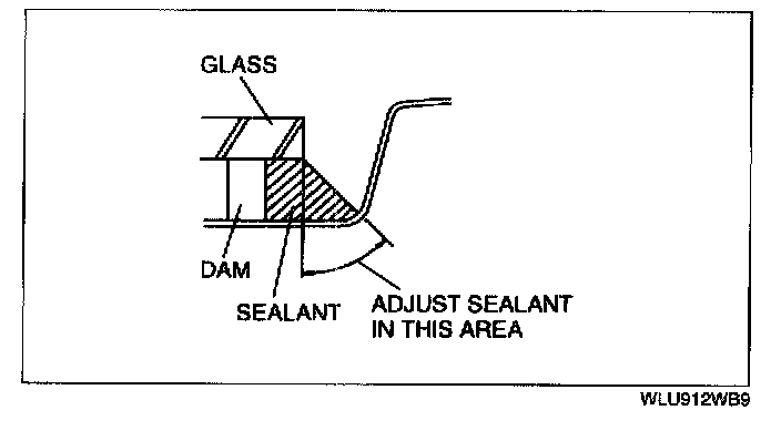 14. Use a scraper to smooth away any sealant that oozes out. Add more sealant to any points of poor contact. Adjust the upper and side sealant as shown, if necessary.