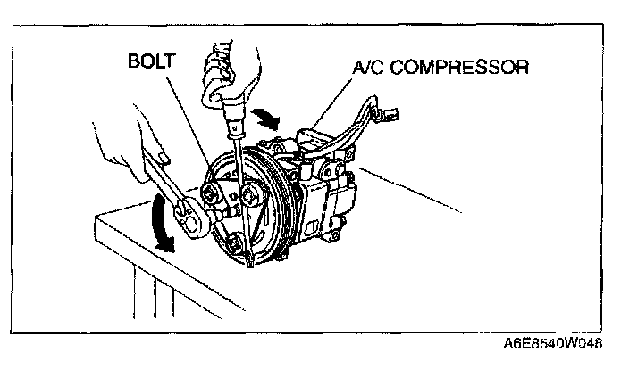 3. Adjust the magnetic clutch clearance. (See MAGNETIC CLUTCH ADJUSTMENT.)