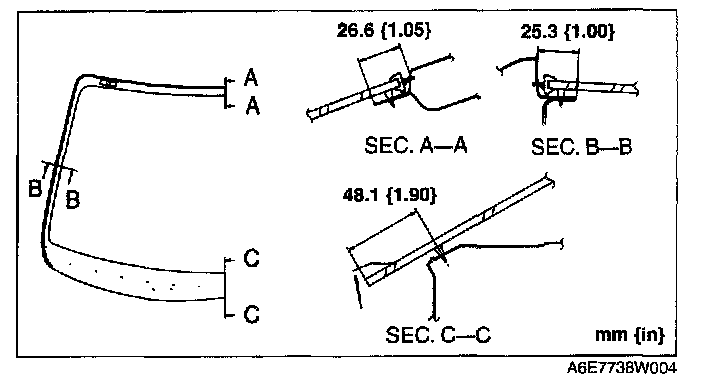 NOTE: Before removing the windshield from the body, mark the position of the windshield by affixing tape to the windshield and body panel.