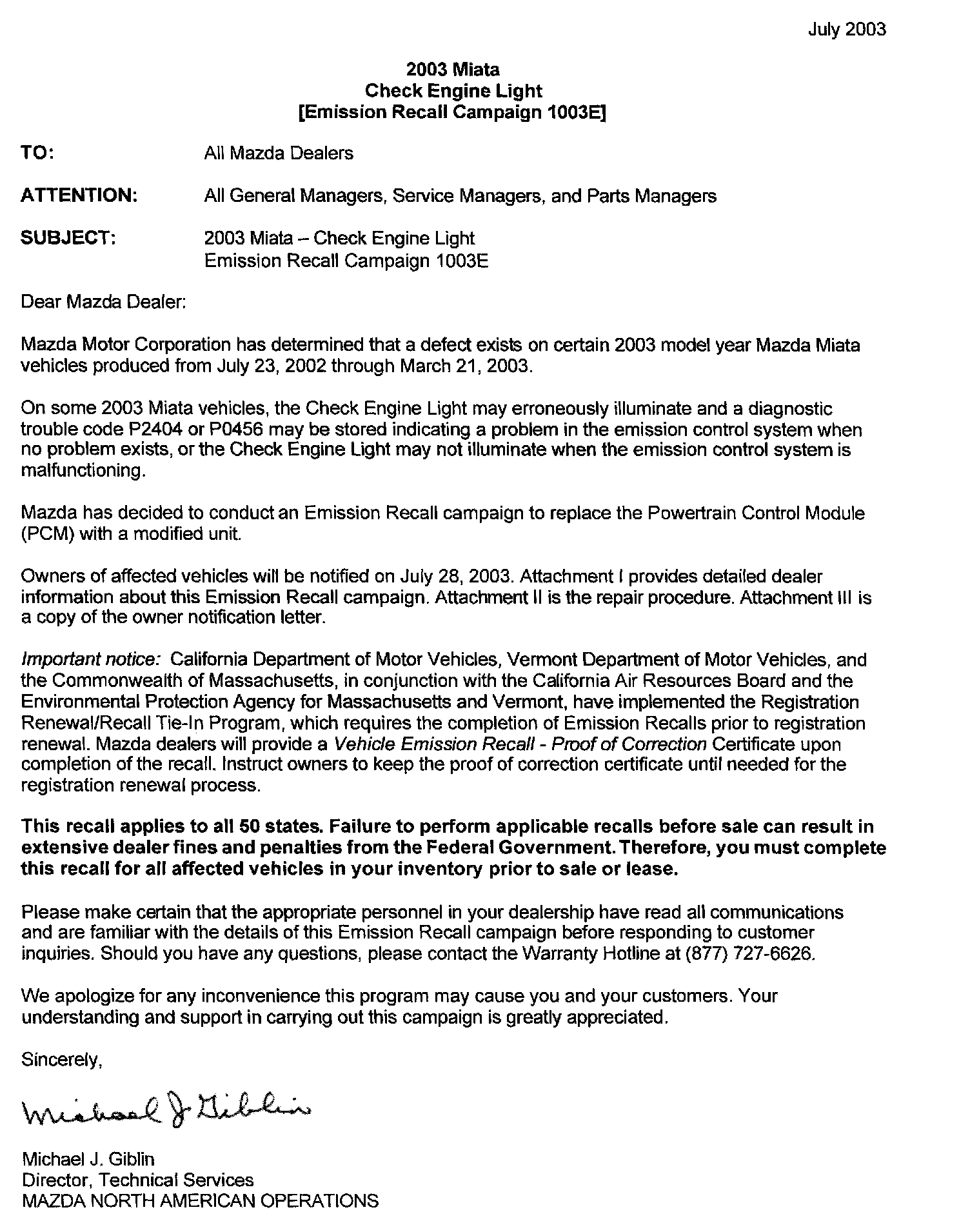 Recall - PCM Replacement for MIL ON/DTC P2404/P0456