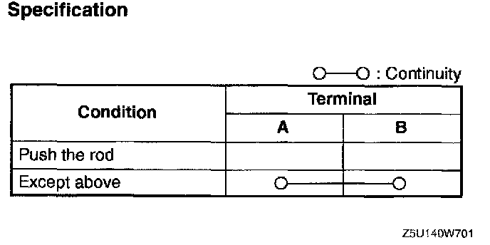 4. Inspect continuity between the clutch switch terminals using an ohmmeter.