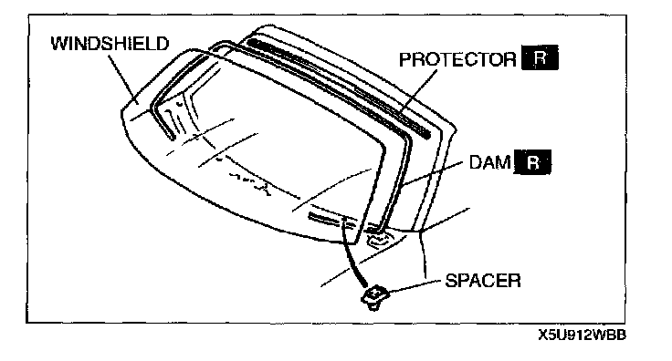 CAUTION: Keep the area free of dirt and grease, and do not touch the surface or the primer may not properly bond to the surface of the glass and body which may cause leaks to occur.