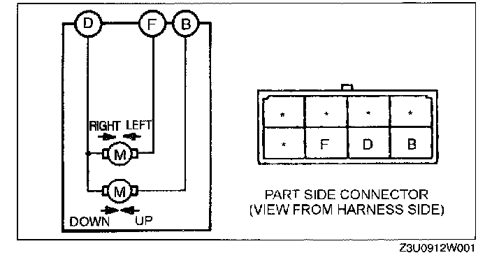 POWER OUTSIDE MIRROR INSPECTION1. Disconnect the power outside mirror connector. (See POWER OUTSIDE MIRROR REMOVAL/ INSTALLATION.)