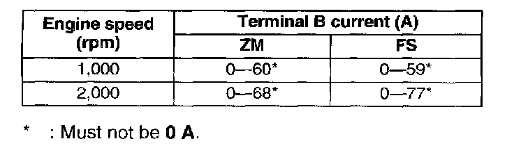4. Connect ammeter, capable of reading 120 A or above, between generator terminal B and the wiring harness.