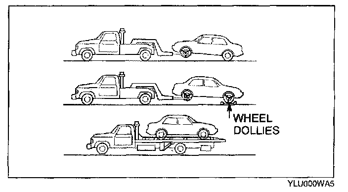 A towed vehicle usually should have its front wheels off the ground. If excessive damage or other conditions prevent this, use wheel dollies.