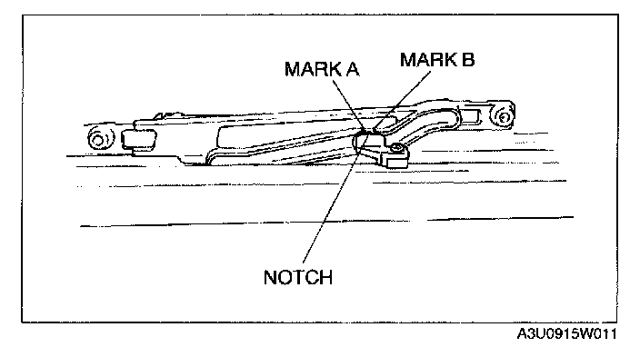 7. Move the guide by hand until notch comes between mark A and mark B.