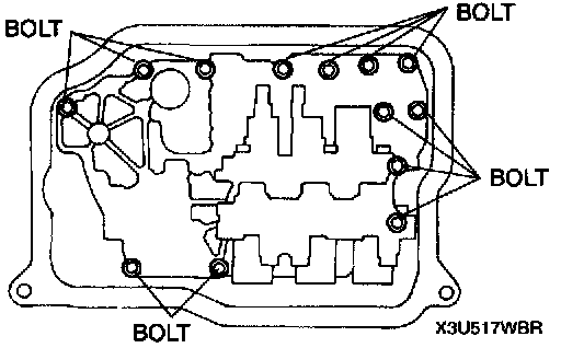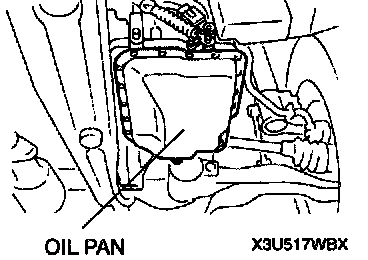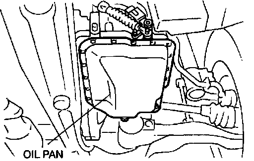 ^ If any old sealant gets into the transaxle during installation of the oil pan, trouble may occur in the transaxle. Remove any old sealant from the transaxle case and oil pan, and clean with cleaning fluids.