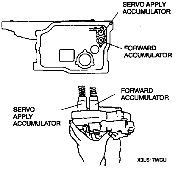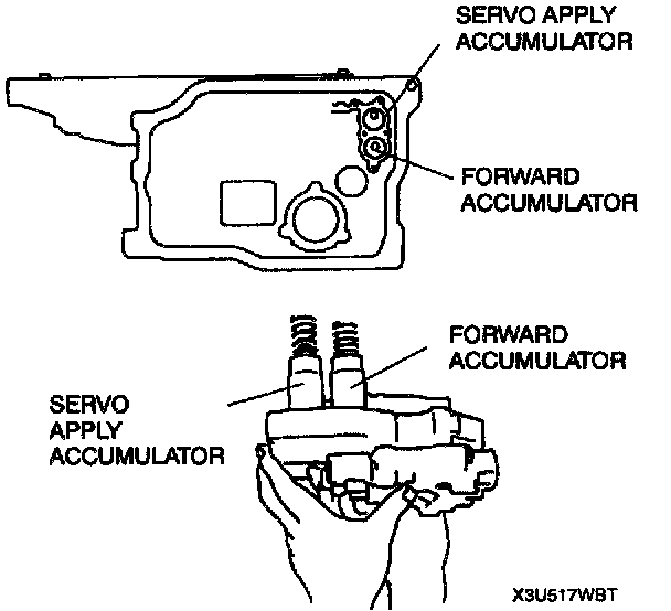 1. Install the accumulator springs and accumulator into the transaxle case.