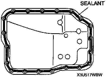 5. Apply a light coat of silicon sealant to the contact surfaces of the oil pan and transaxle case.
