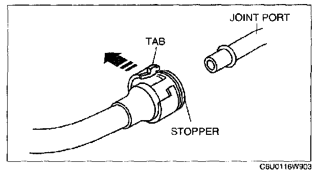 NOTE: The locking coupler has the internal locking tab which retain the joint port. Be sure that the tab on the locking coupler is pushed until it stops to release the internal locking tab.