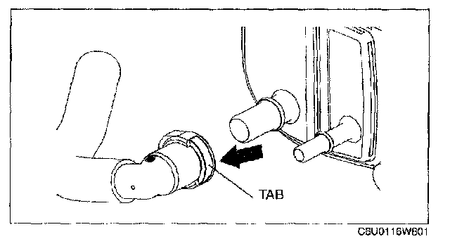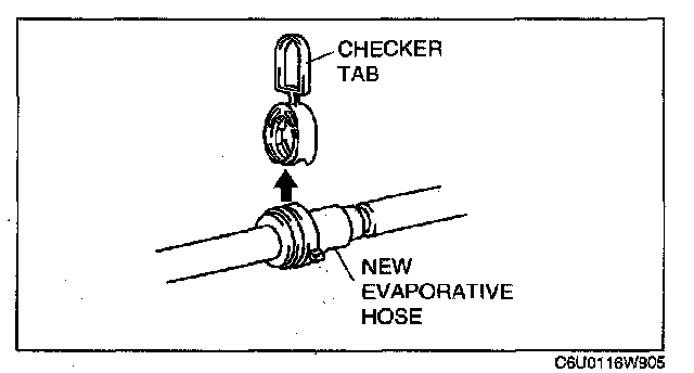 NOTE: For type A, a checker tab is integrated with the quick release connector for new evaporative hoses. The checker tab will be released from the quick release connector after it is completely engaged with the joint port.