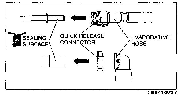 - If the quick release connector O-ring is damaged, replace the evaporative hose.