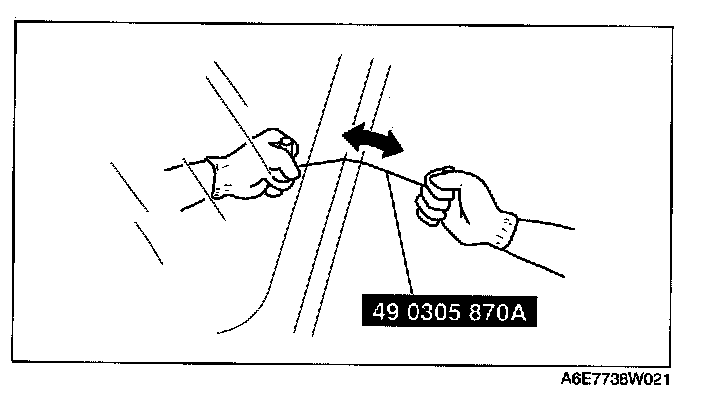 4. Fix one end of the SST (piano wire), and while pulling the other end, cut the sealant around the windshield.