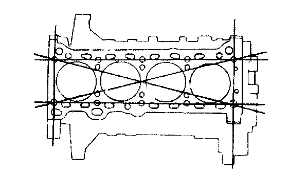 Cylinder Block Inspection / Repair1. Measure the distortion of the cylinder block top surface in the six directions. Repair by grinding or replace as necessary.