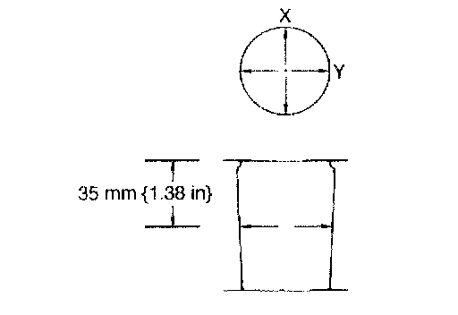 2. Measure the cylinder bores in X and Y directions at 35 mm (1.38 inch) below the top surface.