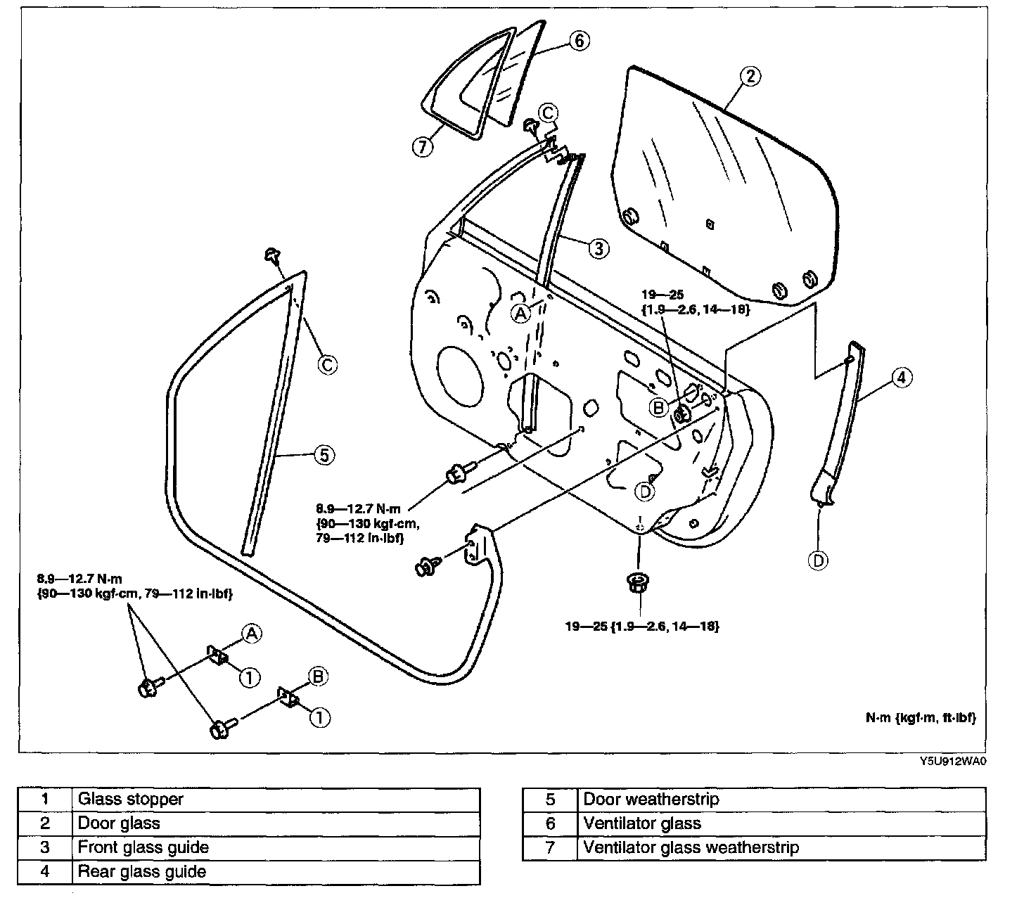 DOOR GLASS AND GUIDE REMOVAL/INSTALLATION1. Lower or raise the front door glass so that the distance from the top of the front door glass at the molding is 225 mm {8.86 in}.