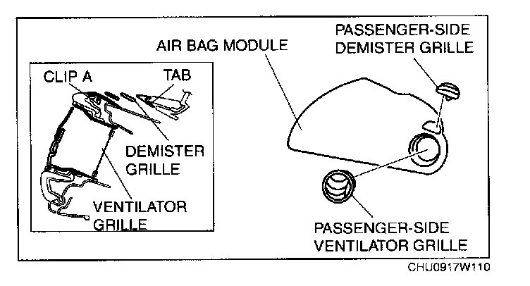 4. Pull the passenger-side demister grille upward and detach clip A.