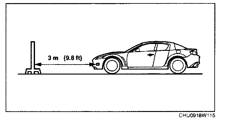 5. Set the fog lights 3 m {9.8 ft} from the white screen.