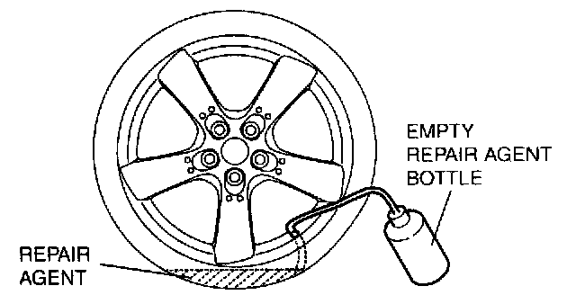 3. Insert the hose through the valve and into the tire. Stand the tire up so that the hose end sinks into the repair agent.