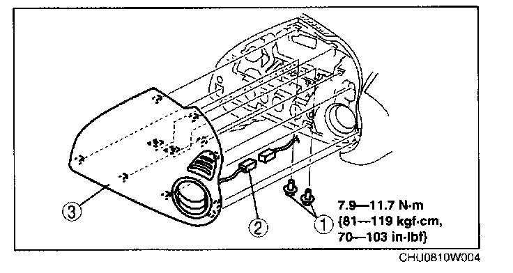 - Due to the adoption of 2-step deployment control in the passenger-side air bag module, depending on the impact force, it is possible that inflator No.2 might not deploy. In such cases, before disposing of the air bag module, make sure to follow the inflator deployment procedures and verify complete deployment of inflators No.1 and 2.