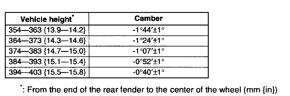 REAR WHEEL ALIGNMENTSpecification (Unloaded Vehicle)