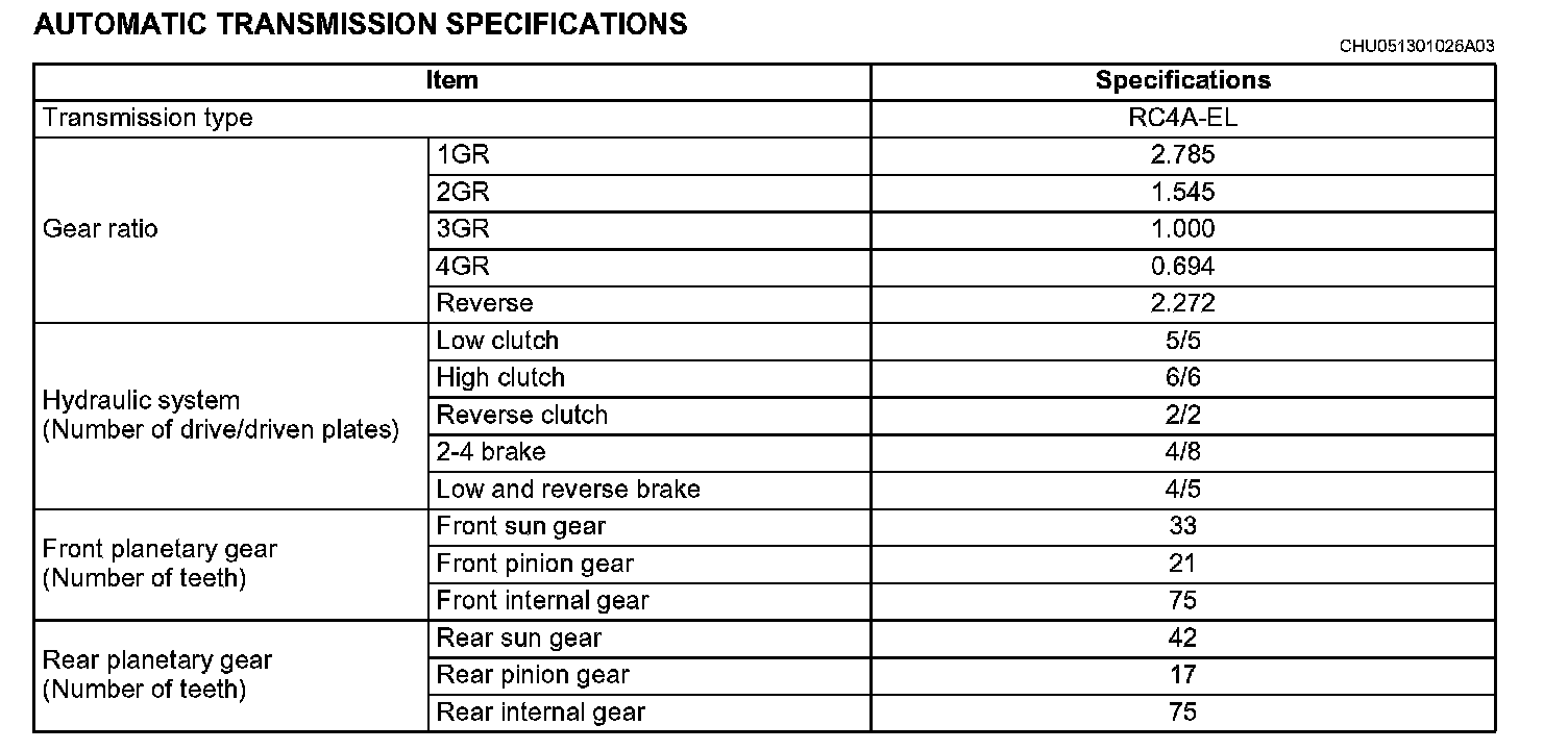 AUTOMATIC TRANSMISSION SPECIFICATIONS