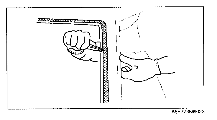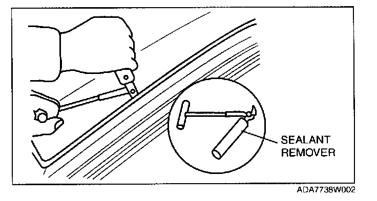 NOTE: For the areas of the sealant that are difficult to cut, use the SST (piano wire) and follow the procedure under "Reusing Windshield".