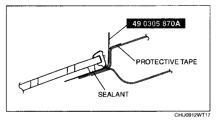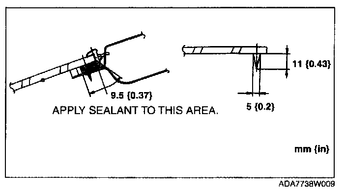 2. If the sealant has come off completely in any one place, apply some primer after degreasing, and allow it to dry for approx. 30 min. Then apply a 2 mm {0.08 in} thickness of sealant.