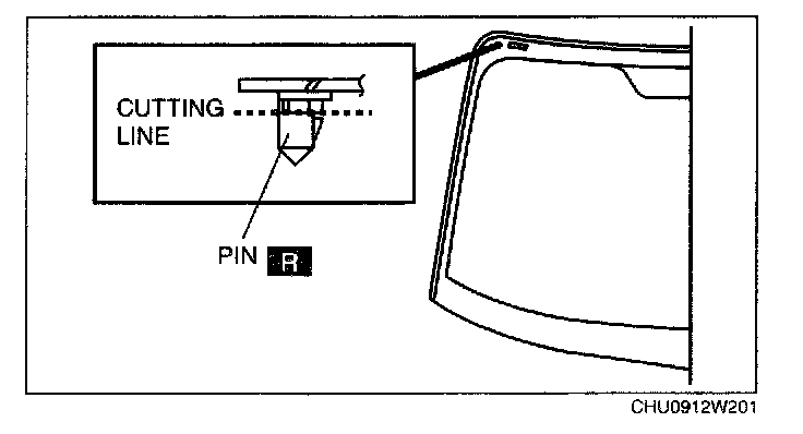 NOTE: As the upper part of the pin adheres to the sealant, cut it using the SST (piano wire).