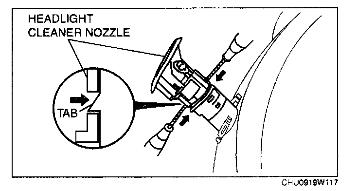 HEADLIGHT CLEANER NOZZLE REMOVAL1. Pull out the headlight cleaner nozzle.