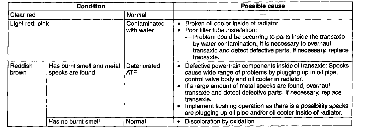 AUTOMATIC TRANSAXLE FLUID (ATF) INSPECTION [FN4A-EL]Automatic Transaxle Fluid (ATF) Condition Inspection