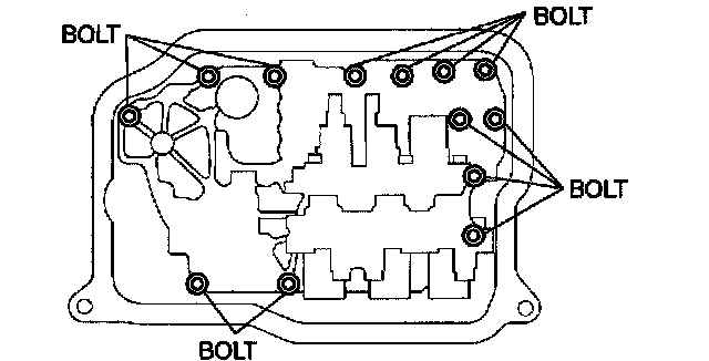 9. Remove the control valve body installation bolts A as shown, then remove the control valve body component as shown.