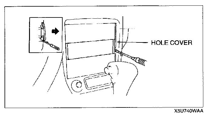 4. Remove the hole covers by inserting a small, tape-wrapped, flathead screwdriver into the slot, then carefully prying them off without scratching the center panel. Pry up and pull off the hole covers carefully to prevent the posts from breaking off.