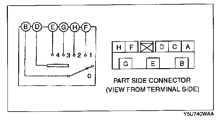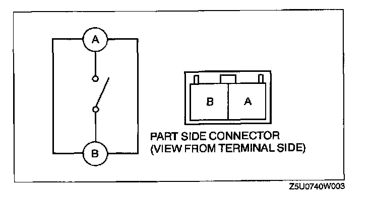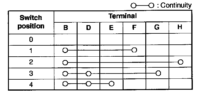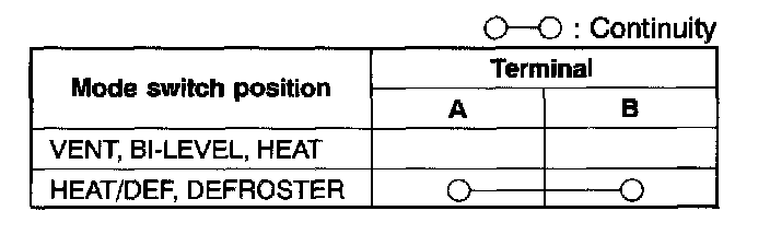 2. Inspect for continuity between the defroster switch terminals using an ohmmeter.