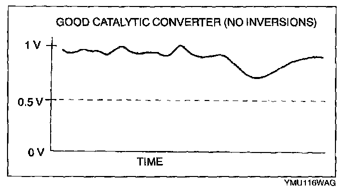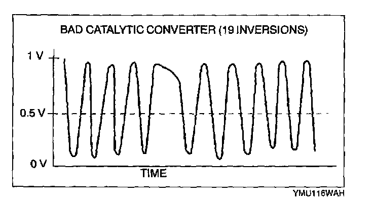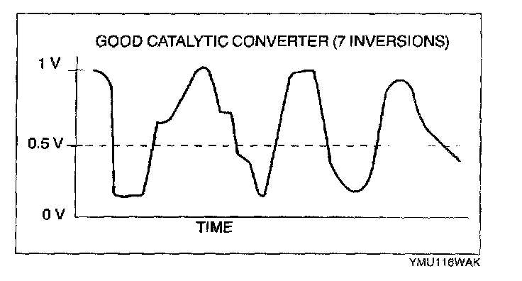 RATIO = 26 inversions (upstream HO2S inversions) + 7 inversions (downstream HO2S inversions) = 3.7 (good converter)