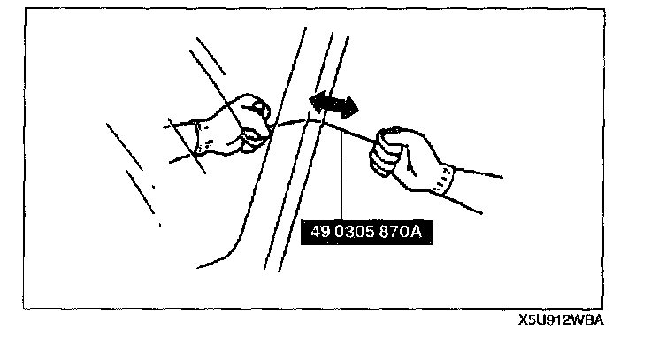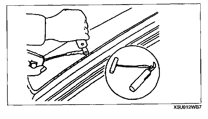 NOTE: For the areas of the sealant that are difficult to cut, use the SST (piano wire) and follow the procedures under "Reusing Windshield".