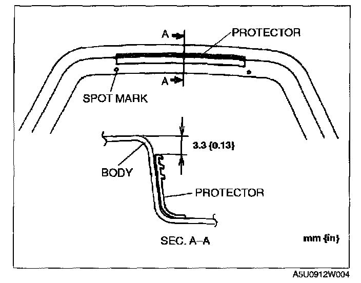 14. Verify that the gap along the upper edge is 8.0 mm {0.31 in} and side edge is 7.0 mm {0.28 in}.