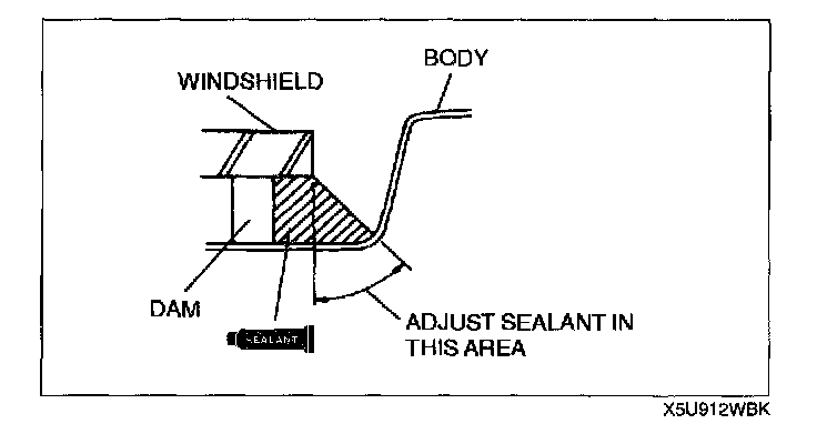 16. Before the surface of the sealant has hardened, install the windshield molding. (See WINDSHIELD MOLDING INSTALLATION.)