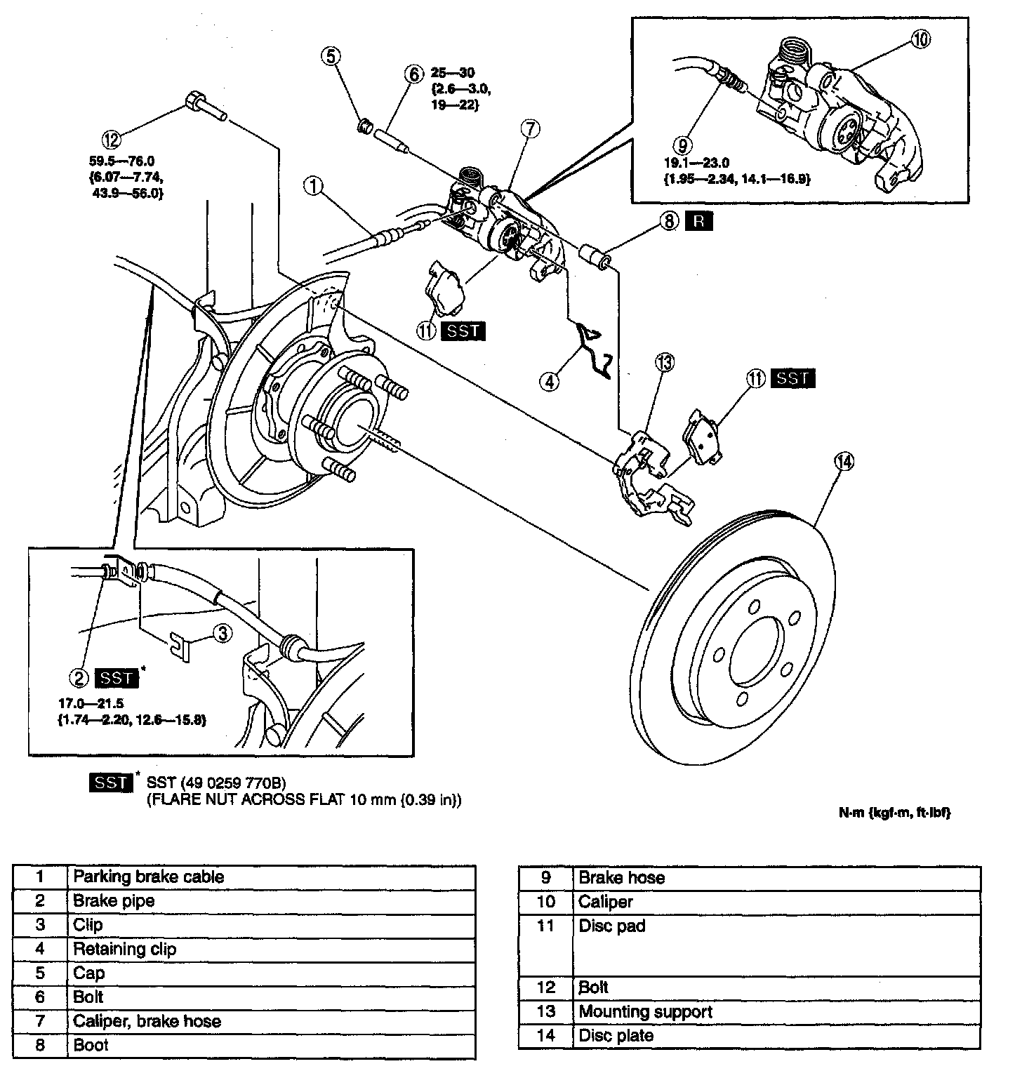 REAR BRAKE (DISC) REMOVAL/INSTALLATION1. Remove in the order indicated in the table.