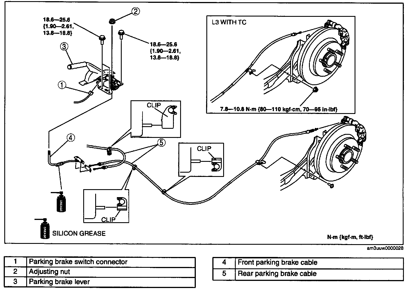 5. After installation, inspect the parking brake lever stroke. (See PARKING BRAKE LEVER INSPECTION.) Testing and Inspection