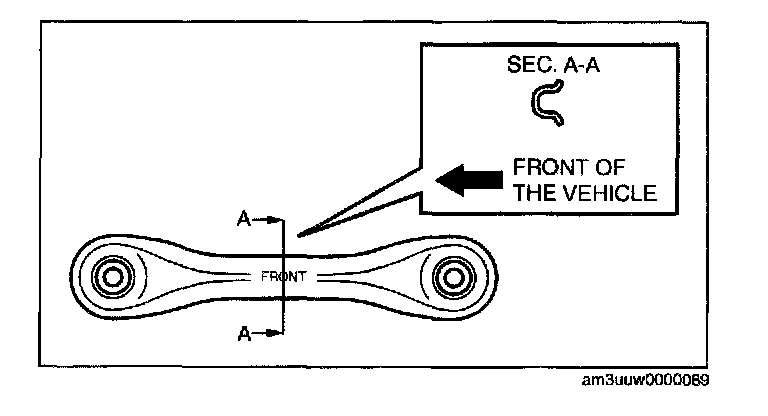 1. Install the rear lateral link so that the rib is facing toward the front of the vehicle.