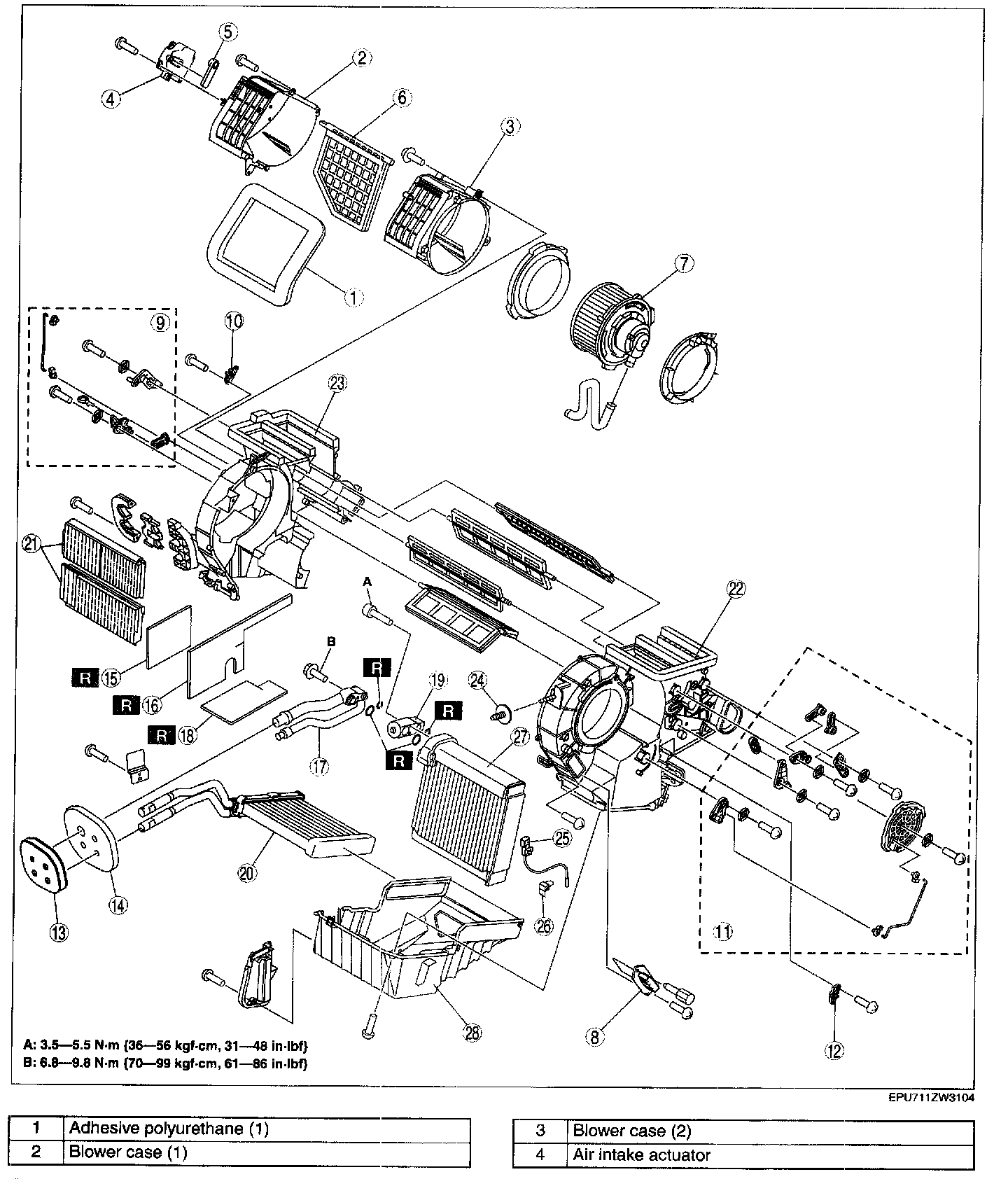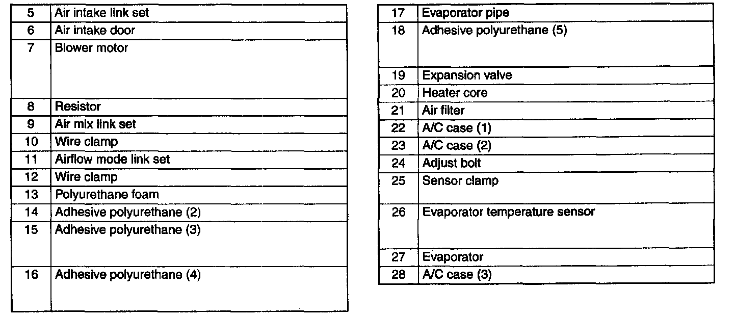 A/C UNIT DISASSEMBLY/ASSEMBLY [MANUAL AIR CONDITIONER]1. Disassemble in the order indicated in the table.