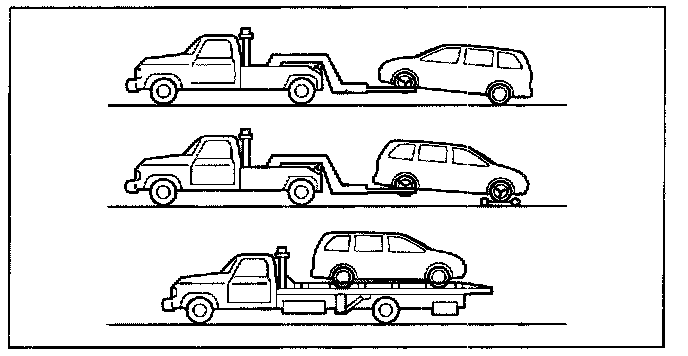 - A towed vehicle usually should have its front wheels off the ground. If excessive damage or other conditions prevent this, use wheel dollies.