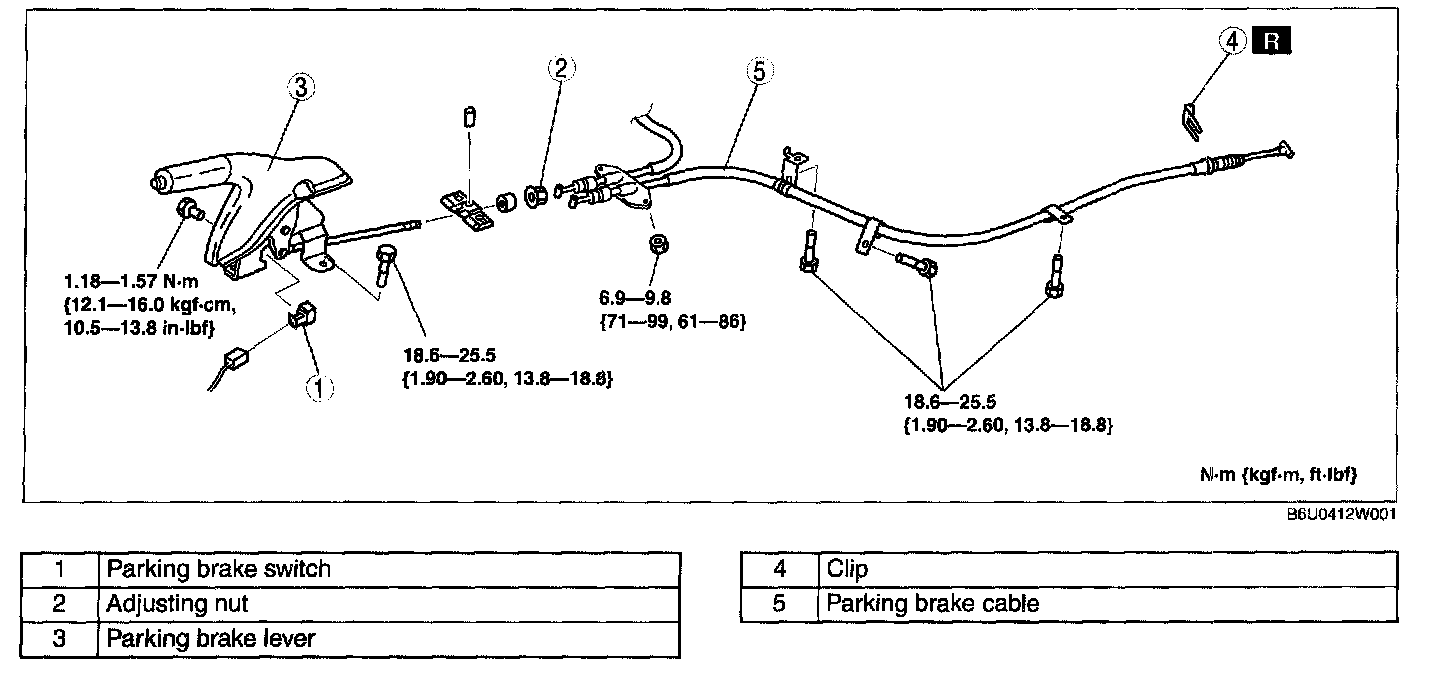 PARKING BRAKE (LEVER TYPE) REMOVAL/INSTALLATION1. Remove the console.