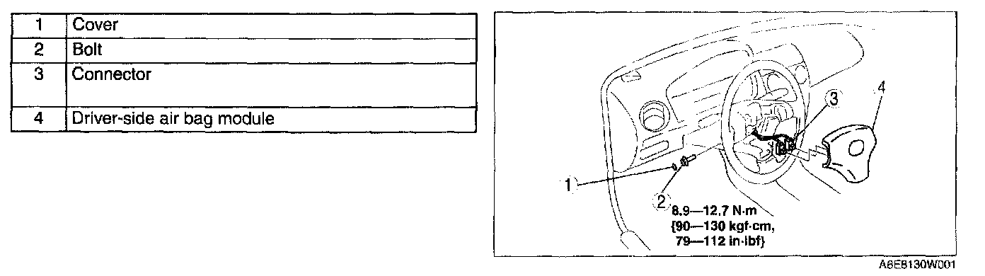 - Due to the adoption of 2-step deployment control in the driver-side air bag module, depending on the impact force, it is possible that inflator No. 2 might not deploy. In such cases, before disposing of the air bag module, make sure to follow the inflator deployment procedures and verify complete deployment inflators No. 1 and 2.