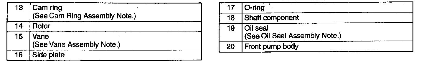 Power Steering Oil Pump Component Disassembly Note