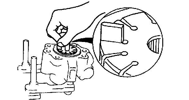 1. Place the vanes in the rotor with the rounded edges contacting the cam.