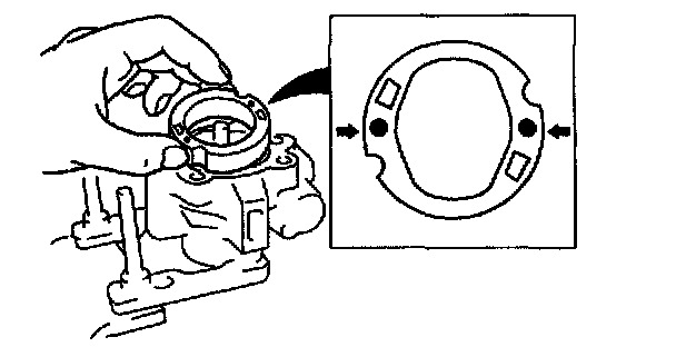 1. Install the cam ring in the front pump body with the mark facing upward.