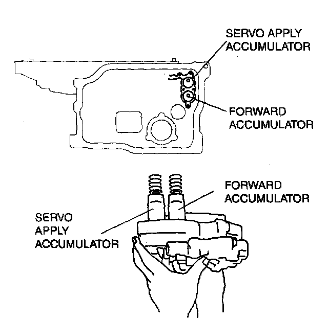 1. Install the accumulator springs and accumulators into the transaxle case.